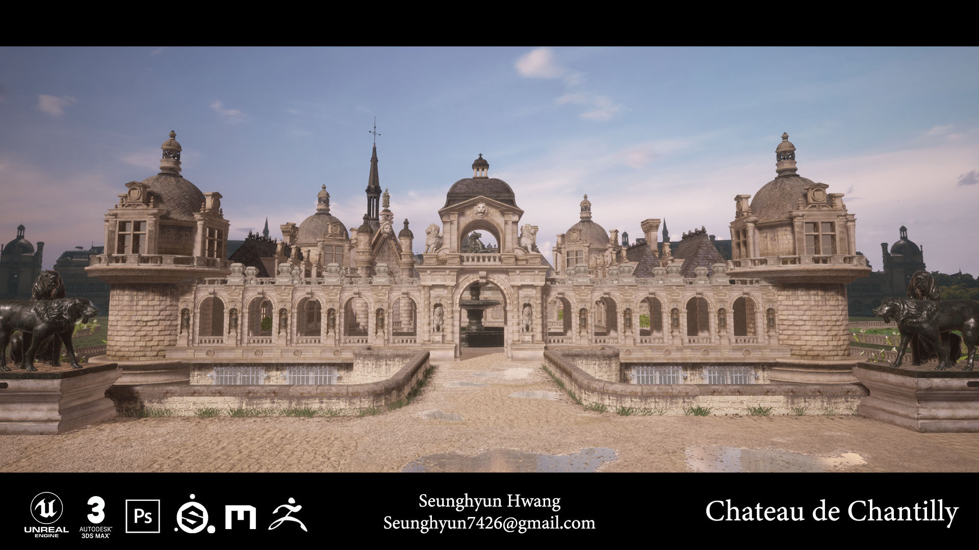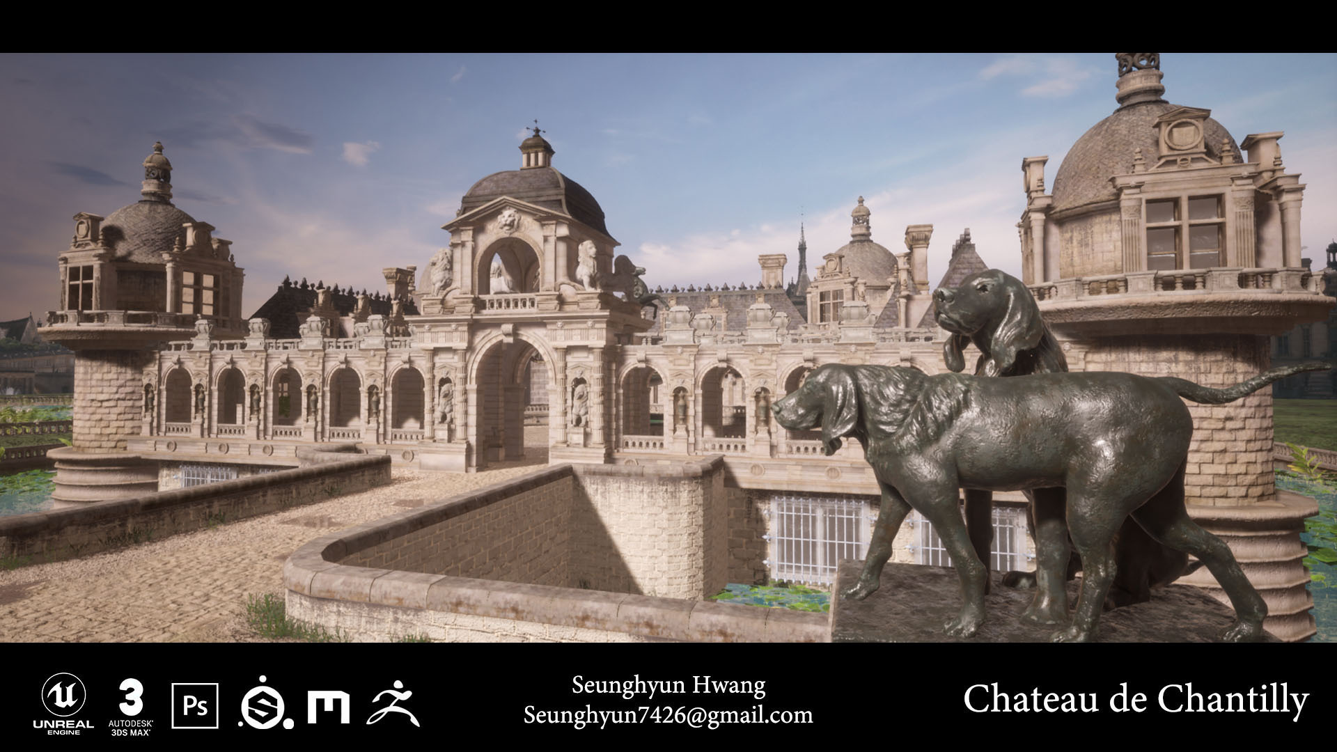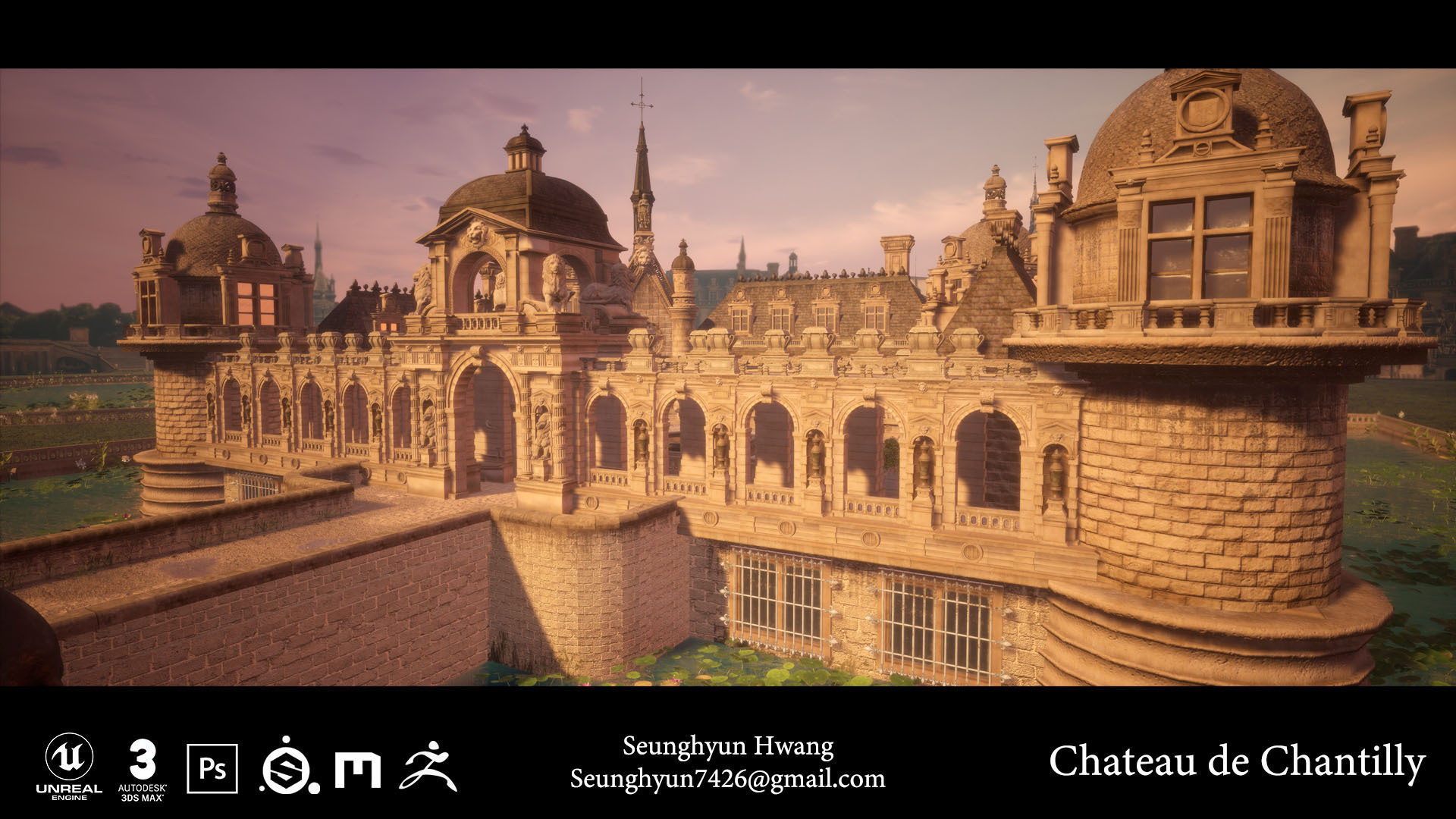 Hello! I am Seunghyun Hwang studying 3D Games art and design. I am an environment artist, confident at 3D modeling, texturing and level design. For my Degree Project I modelled the famous French castle, Chateau de Chantilly.
