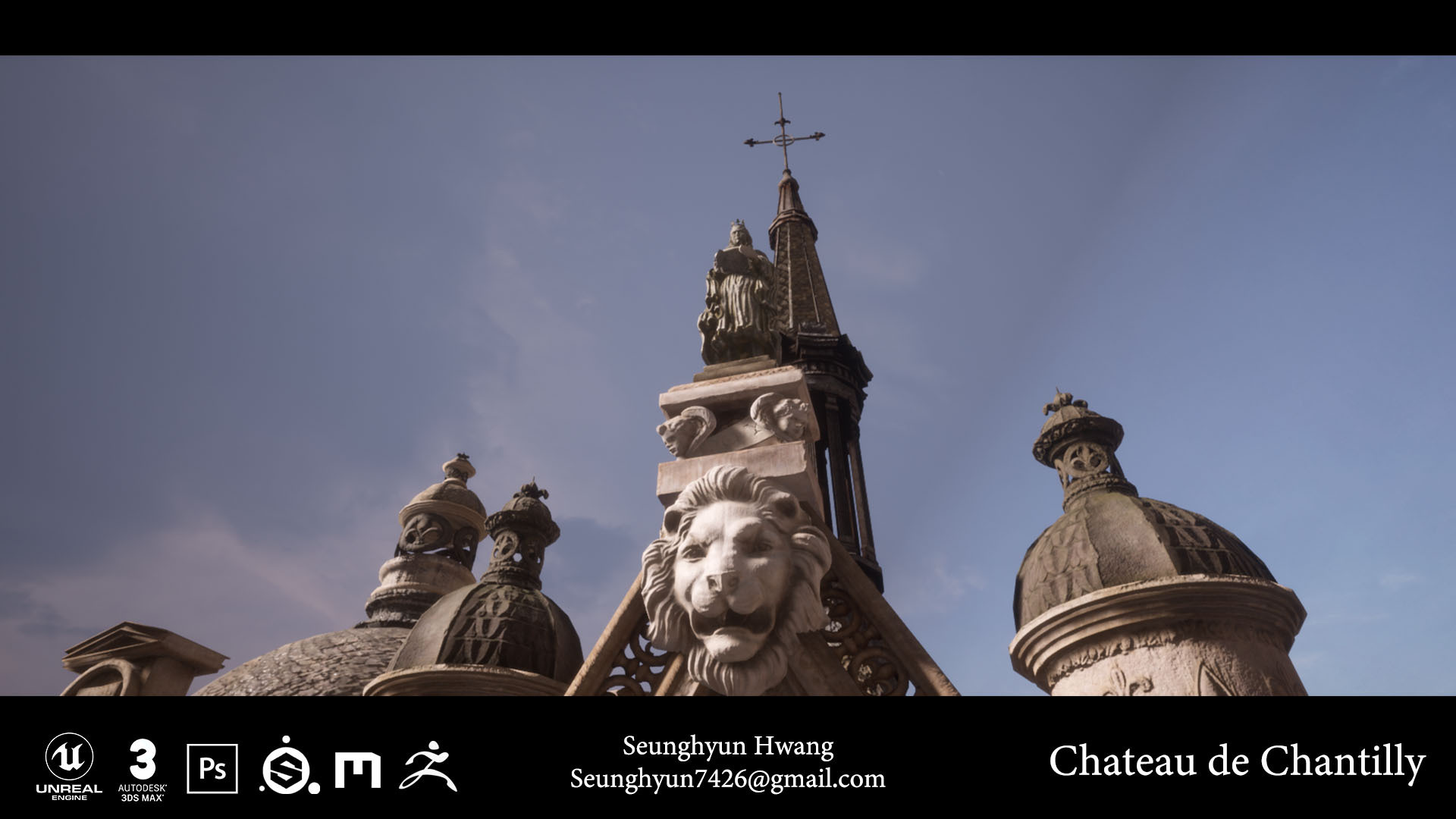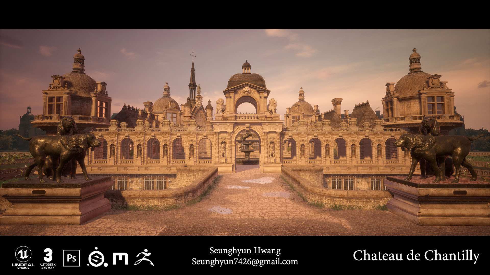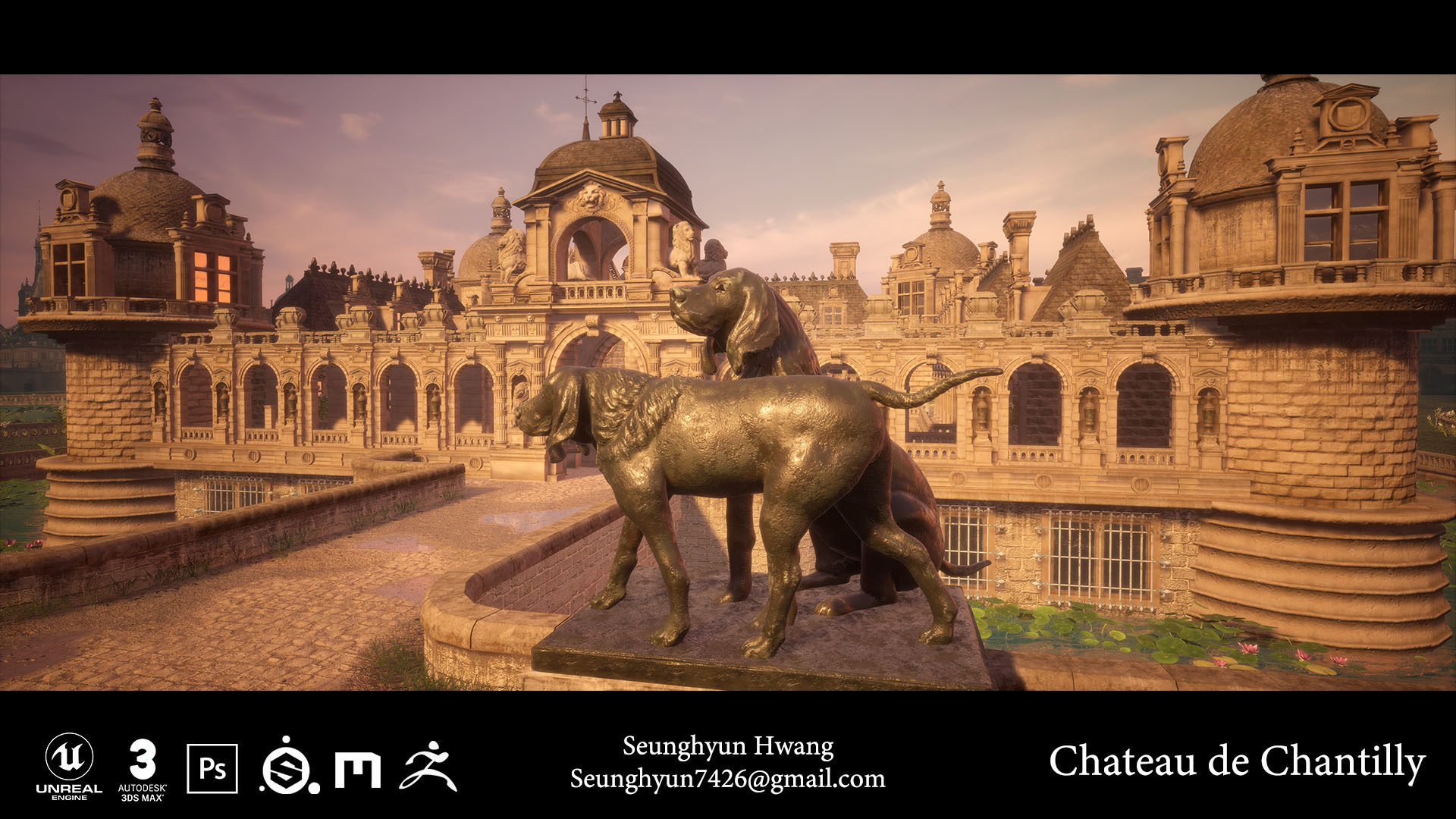 Hello! I am Seunghyun Hwang studying 3D Games art and design. I am an environment artist, confident at 3D modeling, texturing and level design. For my Degree Project I modelled the famous French castle, Chateau de Chantilly.